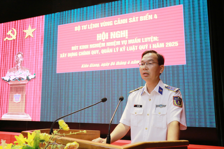 Ngày 04/4, tại thành phố Phú Quốc, tỉnh Kiên Giang, Bộ Tư lệnh Vùng Cảnh sát biển 4 tổ chức Hội nghị rút kinh nghiệm nhiệm vụ huấn luyện; xây dựng chính quy, quản lý kỷ luật quý I năm 2025. Đại tá Trần Nguyên Lai - Ủy viên Ban Thường vụ Đảng ủy, Phó Tư lệnh, Tham mưu trưởng Bộ Tư lệnh Vùng Cảnh sát biển 4 chủ trì hội nghị.