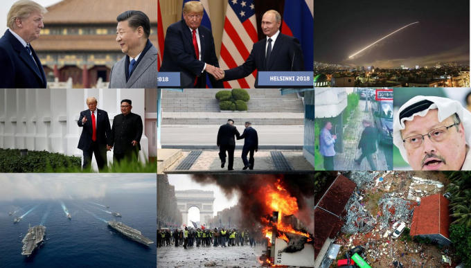 Thế giới năm 2018 chứng kiến nhiều biến động, nổi bật là cuộc cạnh tranh chiến lược Mỹ-Trung trên các mặt trận kinh tế - chính trị - an ninh, sự tham gia của các nước lớn trong bàn cờ Biển Đông hay quan hệ không ngớt căng thẳng giữa Nga và phương Tây.