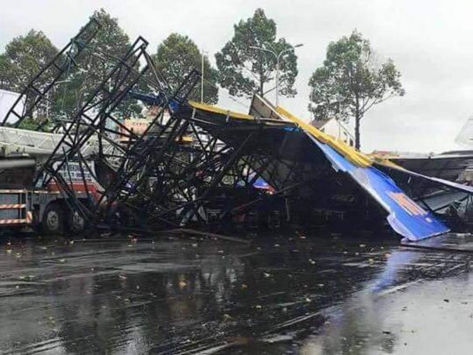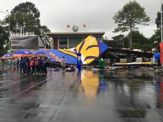 Khoảng 12h ngày 26/6, bức tường Tiger khổng lồ ở Quảng trường tỉnh Đồng Nai (TP Biên Hoà) đổ sập trong sự hoảng sự của nhiều người.