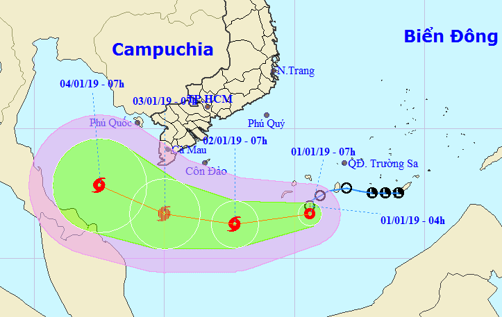 Trong đêm 29/12 áp thấp nhiệt đới đi vào Biển Đông và mạnh lên thành bão, giật cấp 10