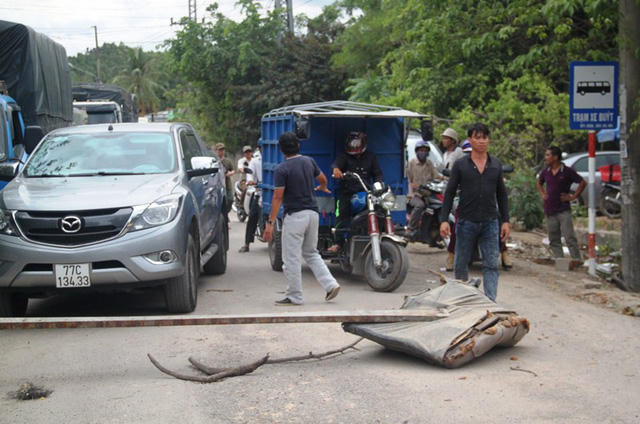 Đến hơn 16h chiều 17/7, nhiều người dân ở khu vực 7 (phường Bùi Thị Xuân, TP Quy Nhơn) vẫn đang dùng cây để chặn tuyến đường đường giao từ Quốc lộ 1 đến trung tâm xã Phước Mỹ (TP Quy Nhơn), Khu Công nghiệp Phước Mỹ, khiến hàng chục xe tải phải dừng lại. Sự việc kéo dài nhiều giờ đồng hồ, nhưng ngành chức năng địa phương chưa có biện pháp xử lý.