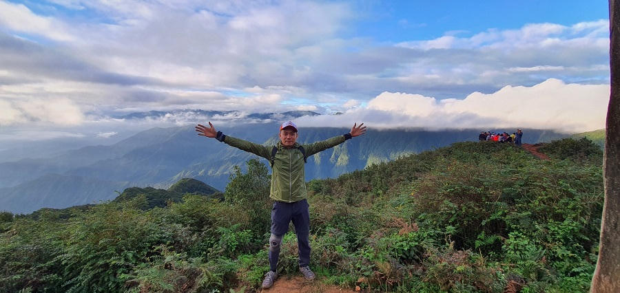 Ông Khang A Chua - Phó chủ tịch UBND huyện Trạm Tấu tham gia hành trình leo núi "Bước chân trên mây"