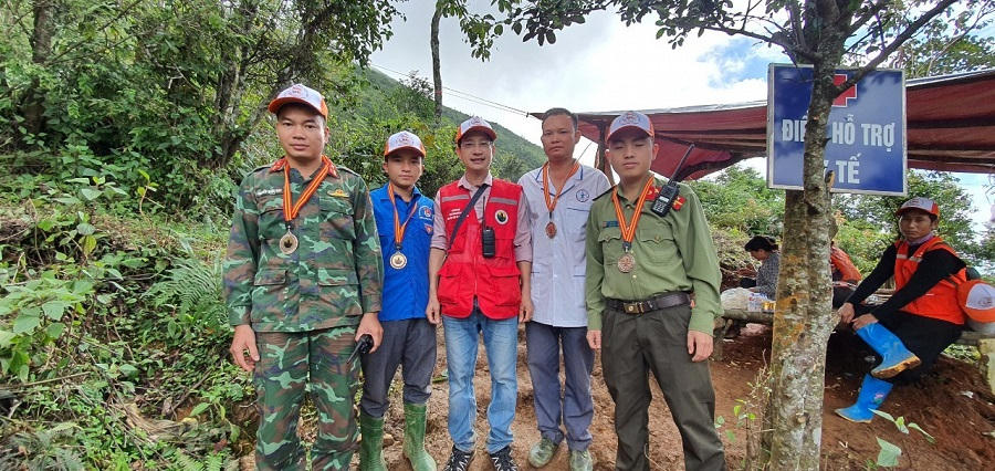 Đồng hành với chúng tôi – hơn 100 nhà báo - trên cung đường chinh phục đỉnh Tà Chì Nhù, là những chiến sỹ quân đội, an ninh, cảnh sát, cán bộ y tế... của huyện Trạm Tấu, những người giữ an toàn cho suốt hành trình từ nơi nghỉ của đoàn lên đến đỉnh núi. Trên cung đường từ chân núi lên đến đỉnh, có 3 trạm dừng nghỉ. Ở mỗi nơi, đều có đầy đủ các thành phần túc trực.