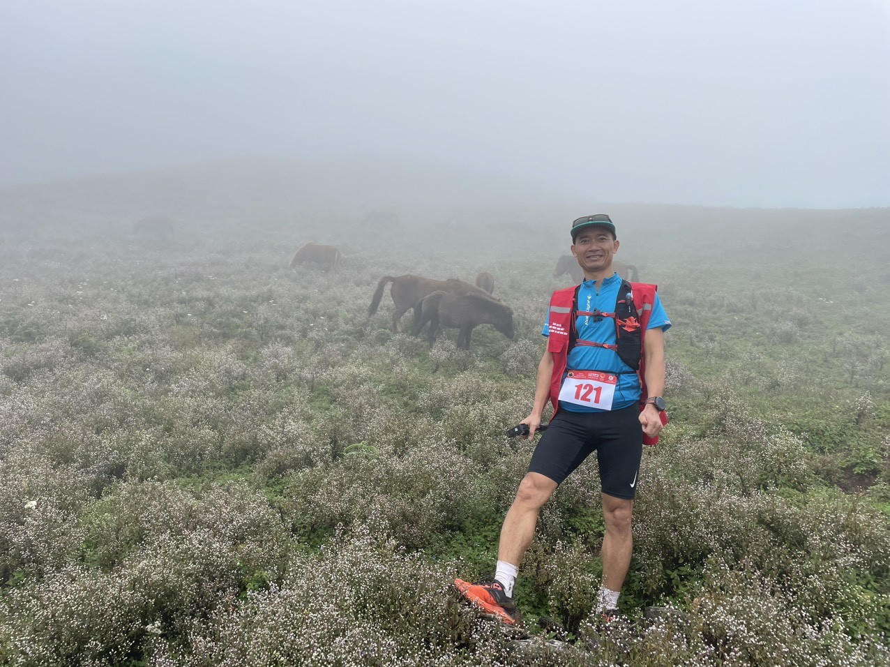 VĐV chụp ảnh cùng đàn "ngựa trời" và mênh mông hoa "Chi Pâu"