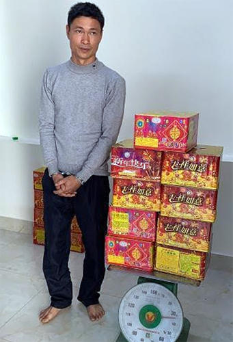Đối tượng bị bắt giữ cùng số lượng lớn pháo nổ. (Ảnh: báo Công an nhân dân)