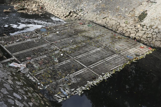 Theo chuyên gia, cá bị cuốn theo dòng nước được đổ từ Hồ Tây và chết do bị va đập, mắc kẹt vào các lưới chắn rác ở phía đầu thượng nguồn sông Tô Lịch. Ảnh: Hoàng Thành.
