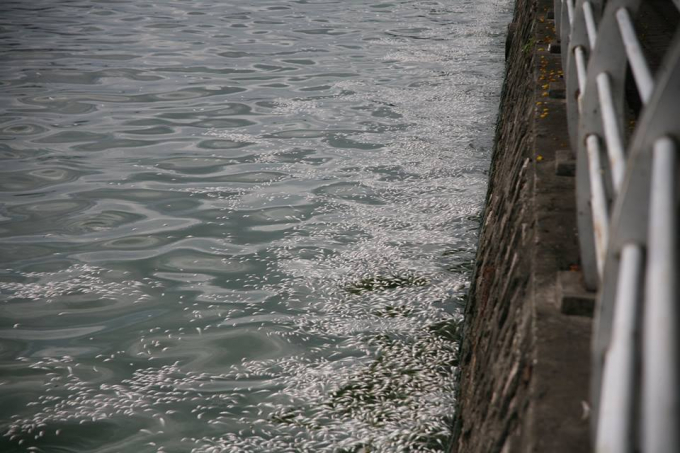 Do thay đổi thời tiết, trên Hồ Tây (Q. Tây Hồ, Hà Nội) cá bỗng nhiên chết hàng loạt nổi trắng mặt hồ.
