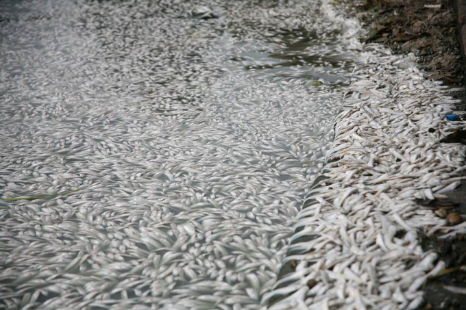 Cá chết nổi trôi dạt vào bờ bốc mùi hôi thôi rất kho chịu.