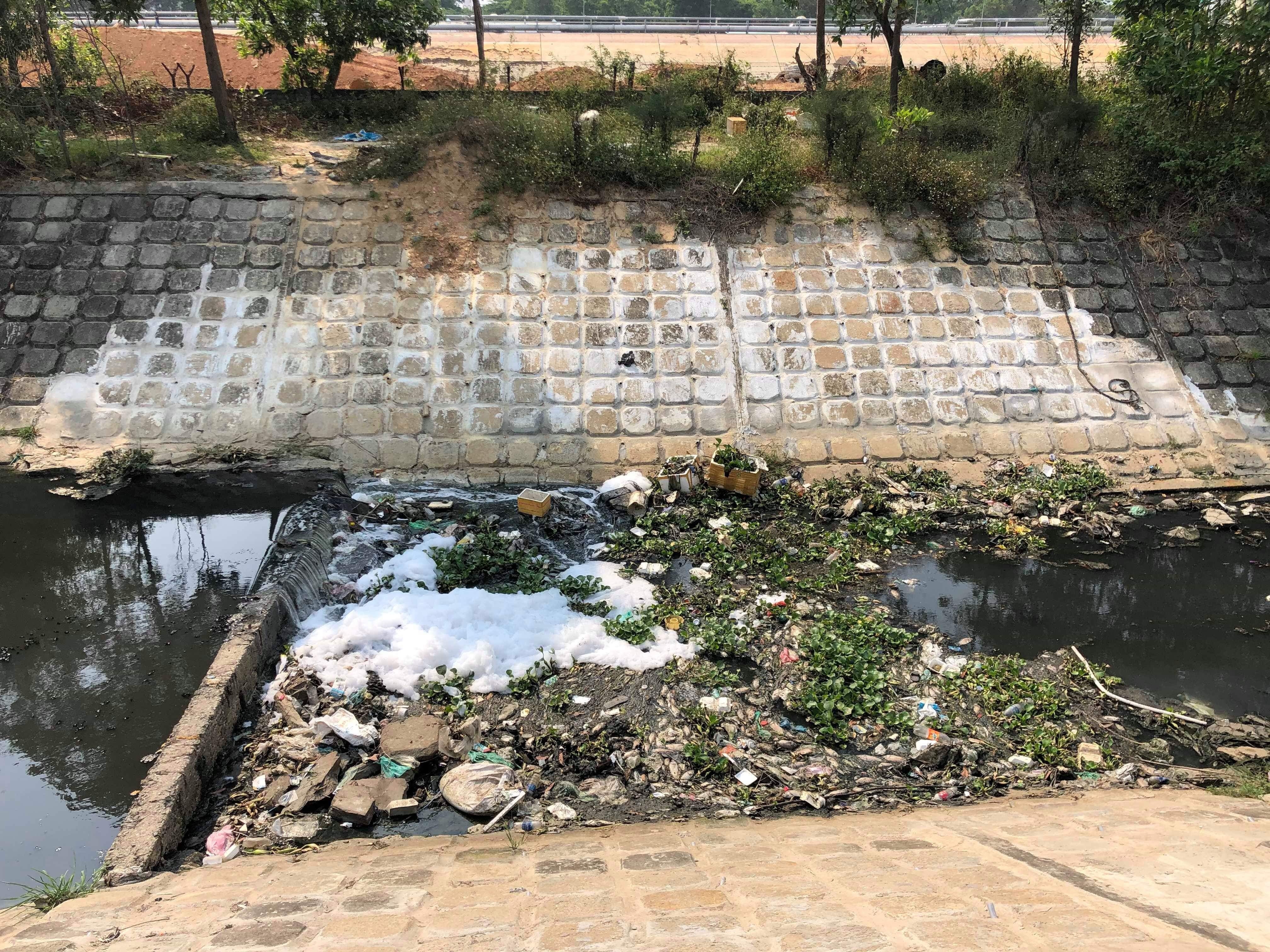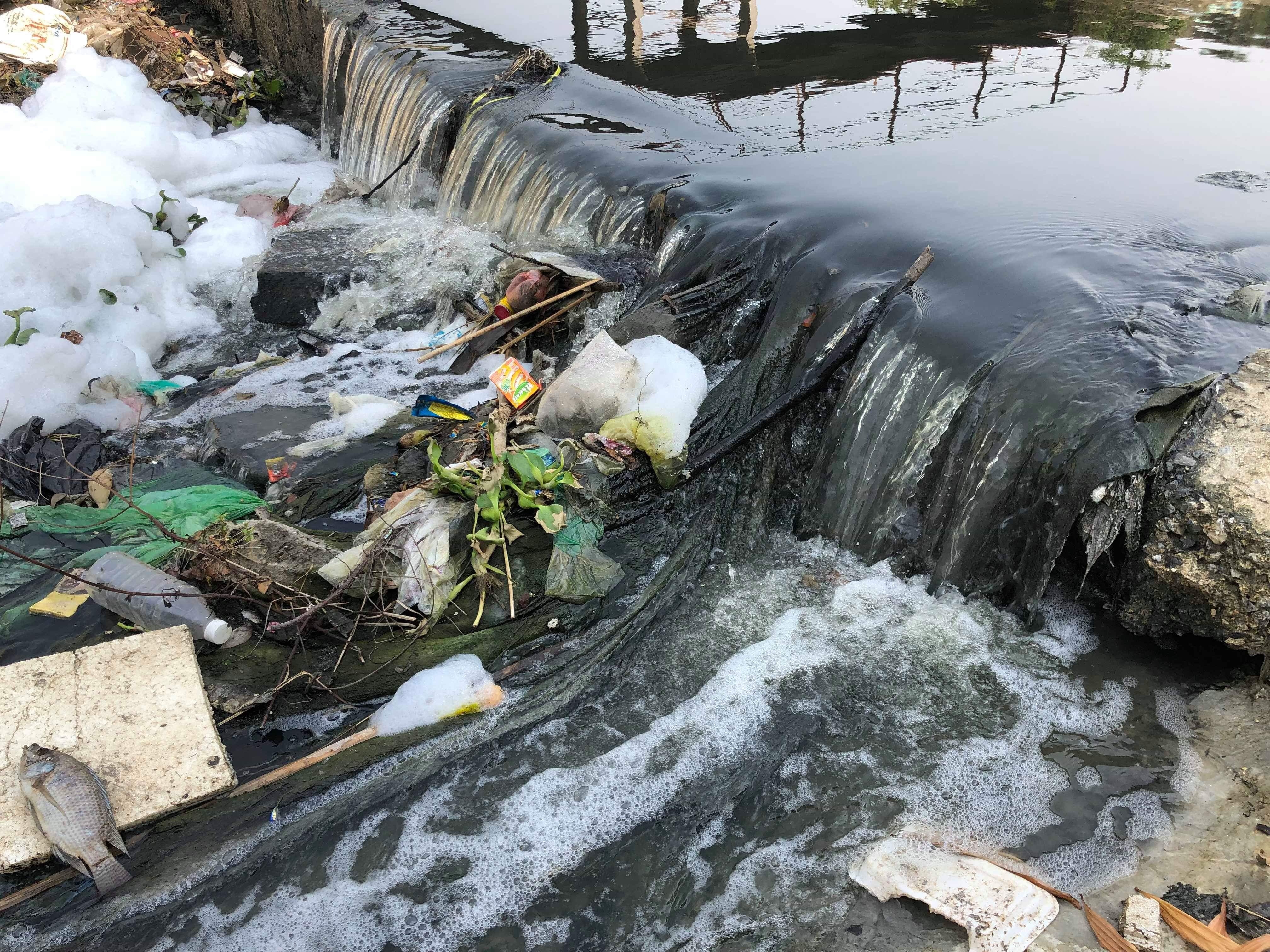 Nước kênh đục màu, nổi bọt, bốc mùi hôi