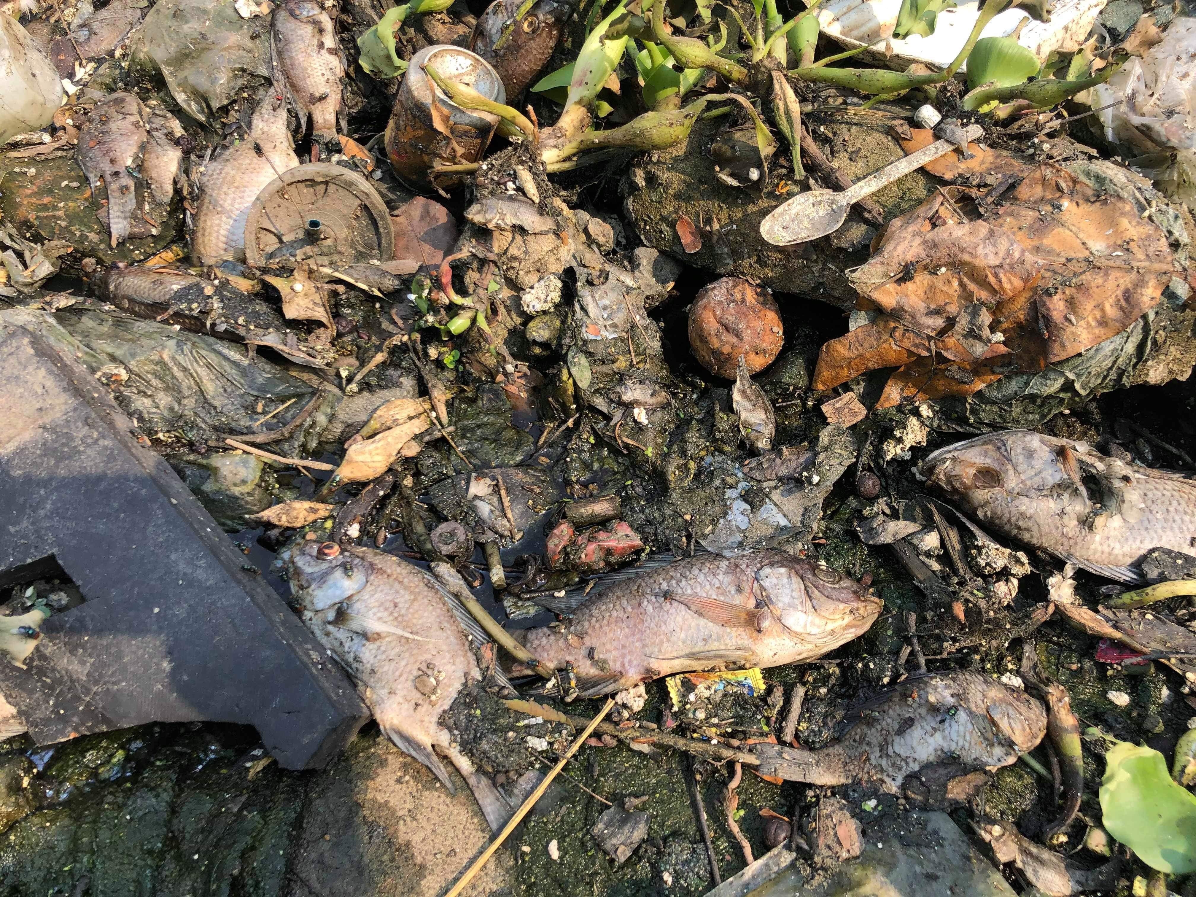 Đây là lần thứ hai xuất hiện tình trạng cá chết, rác thải nổi đầy kênh, sông ở khu vực này chỉ trong vòng hơn 10 ngày nay.