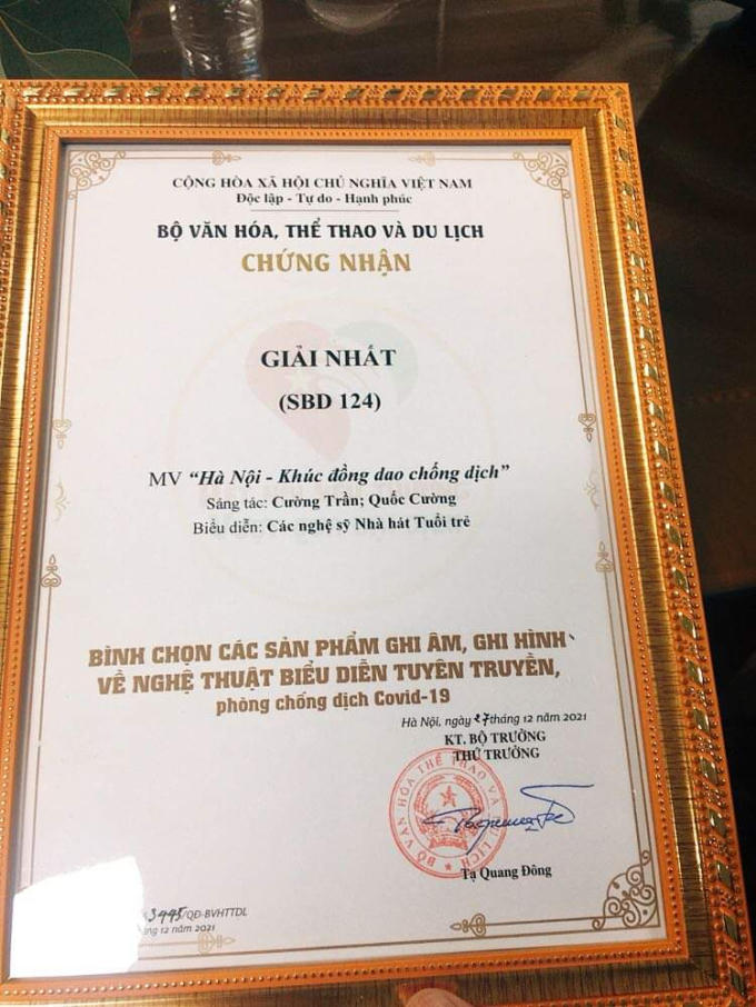 Ban tổ chức đã trao giải Nhất cho tác phẩm MV "Hà Nội - Khúc đồng dao chống dịch" - sáng tác Nhà báo Phạm Quốc Cường, Tổng thư ký tòa soạn Pháp luật Plus - Báo Pháp luật Việt Nam; phối nhạc - Nhạc sĩ Cường Trần.