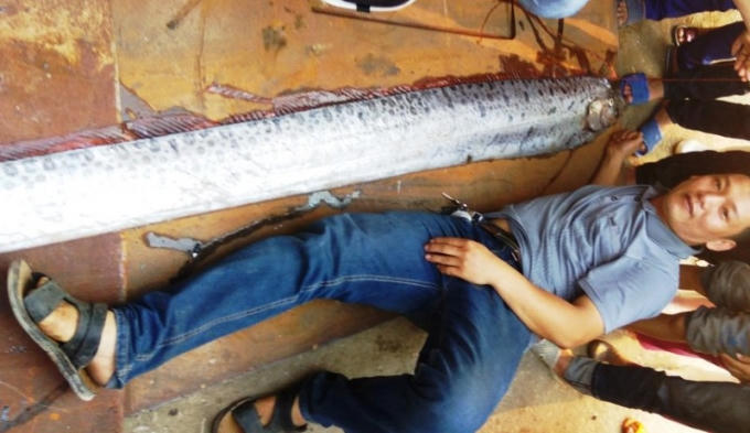 Được biết, con cá này có chiều dài thân hơn 3,6m, cân nặng khoảng 25kg, đoạn thân to nhất có chiều ngang đến 30cm.