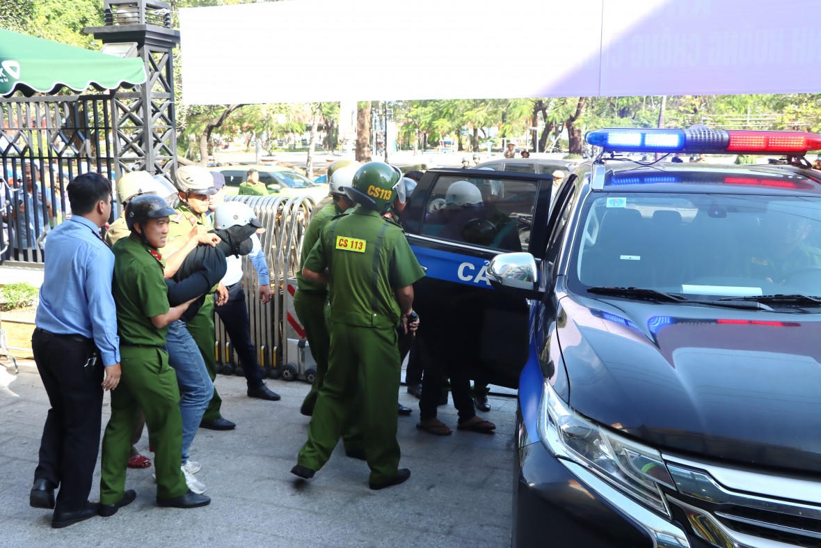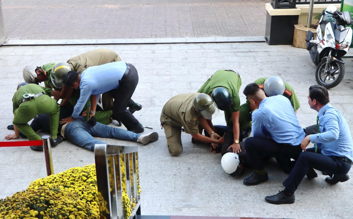 Ngay sau khi nhận tín hiệu, các lực lượng Cảnh sát 113, Cảnh sát cơ động, Cảnh sát hình sự, Cảnh sát giao thông và Công an phường nhanh chóng triển khai đội hình, bao vây hiện trường, khống chế và bắt giữ thành công cả ba đối tượng khi chúng đang lên xe tẩu thoát, bảo đảm an toàn tuyệt đối cho người dân và cán bộ ngân hàng.