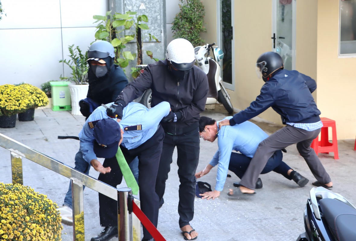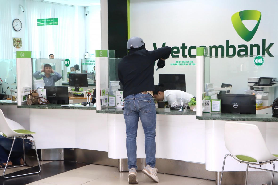 Ba đối tượng mặc quần áo tối màu, đội mũ bảo hiểm, đeo khẩu trang che kín mặt, điều khiển xe mô tô không gắn biển kiểm soát tiếp cận khu vực ngân hàng. Khi vào cổng, các đối tượng bất ngờ dùng bình xịt hơi cay và dao khống chế hai nhân viên bảo vệ, sau đó hai tên xông thẳng vào phòng giao dịch tầng 1, dùng hung khí đe dọa, buộc nhân viên giao toàn bộ tiền mặt.