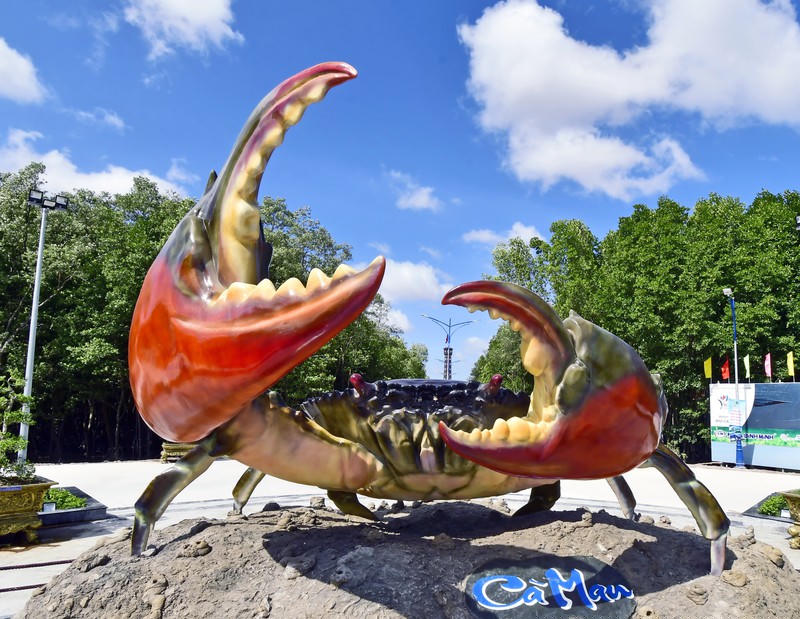 Cà Mau được thiên nhiên ưu đãi với ba mặt tiếp giáp biển cùng với hệ sinh thái rừng ngập mặn phát triển nên nguồn thủy hải sản vô cùng đa dạng và phong phú và cũng là môi trường lý tưởng, thuận lơi cho con cua phát triển (Biểu tượng con cua có kích thước khổng lồ - một đặc sản của Cà Mau).