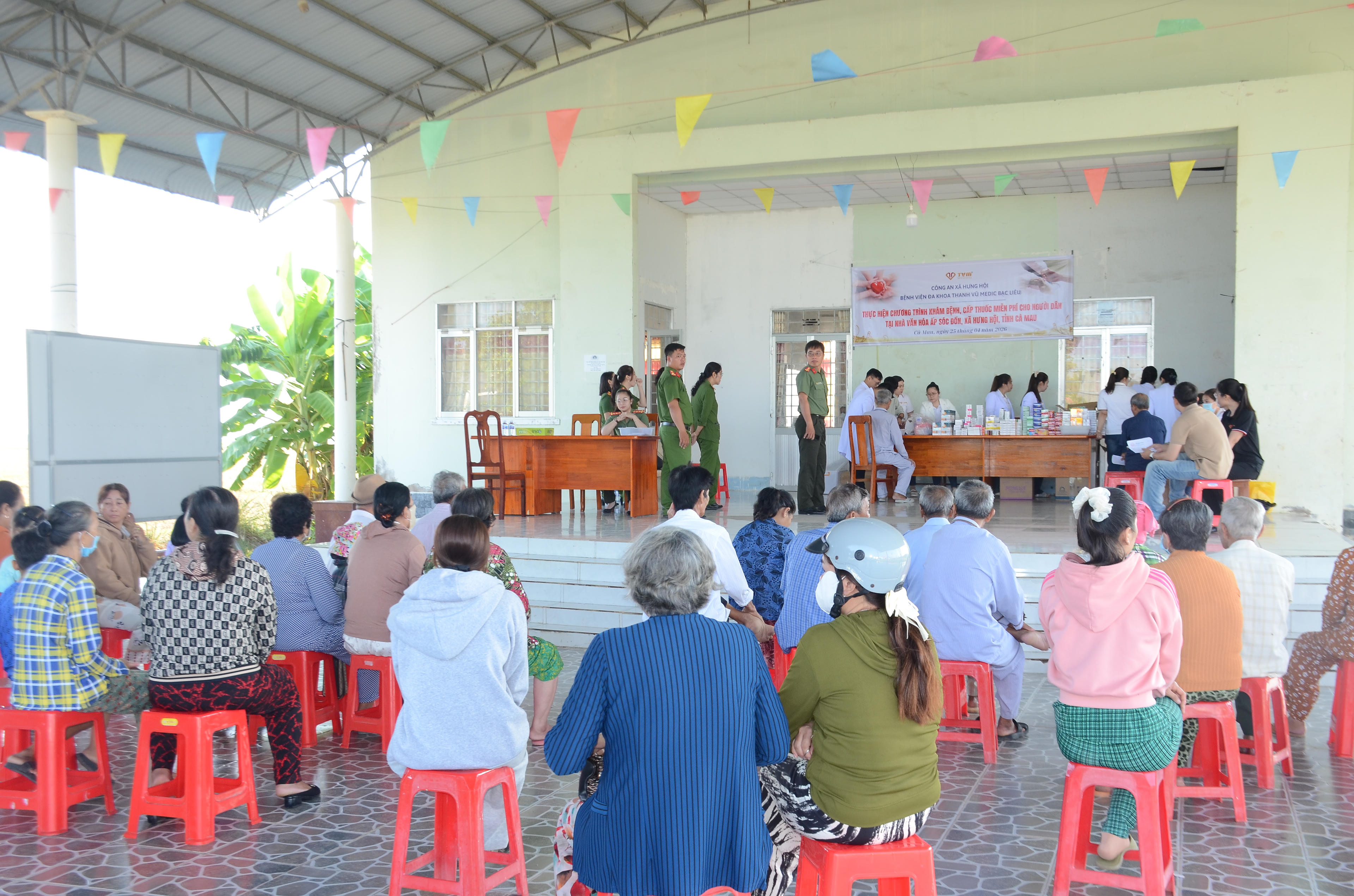 Việc tổ chức khám chữa bệnh miễn phí không chỉ là hoạt động chăm lo sức khỏe cộng đồng mà còn là dịp để lực lượng Công an xã Hưng Hội phát huy vai trò nòng cốt trong công tác dân vận, xây dựng thế trận an ninh nhân dân vững chắc từ cơ sở.