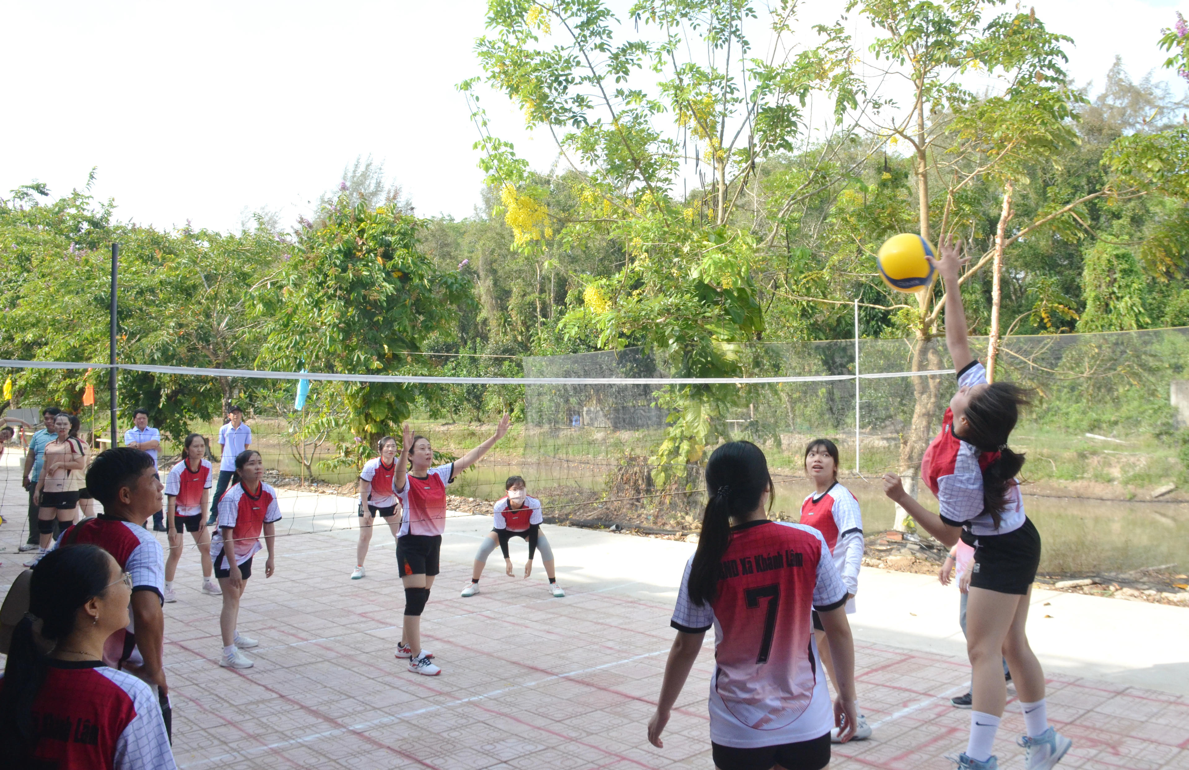 Ở nội dung bóng chuyền hơi nữ, các đội thi thể hiện tinh thần thi đấu nhiệt huyết, đoàn kết và fair-play, với những pha bóng linh hoạt, phối hợp ăn ý. Nội dung này không chỉ tạo điểm nhấn sôi nổi cho Hội thao mà còn góp phần tôn vinh vai trò của nữ cán bộ, đoàn viên trong phong trào thể dục thể thao tại cơ sở.