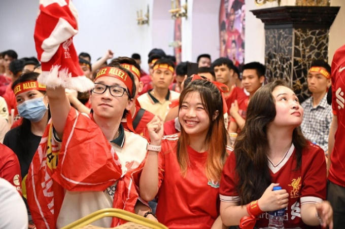 Trong đêm chung kết Champions League, hội cổ động viên Liverpool Hà Nội đã “cháy” hết mình vào “lễ hội” bóng đá.