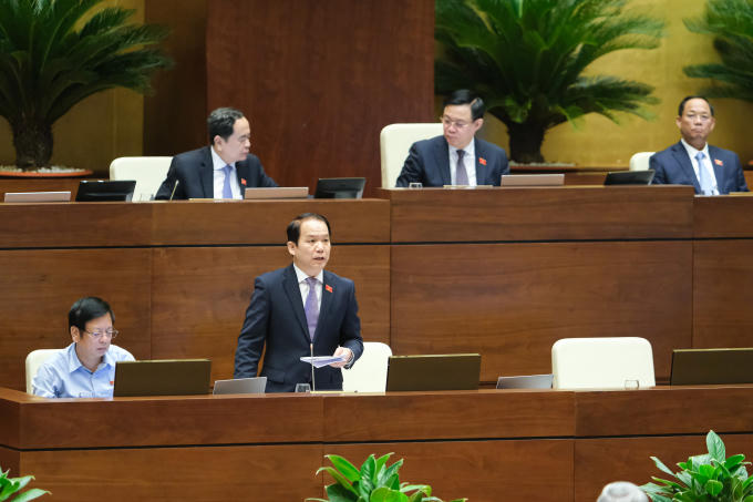 Chủ nhiệm Uỷ ban Pháp luật Hoàng Thanh Tùng phát biểu trước Quốc hội.