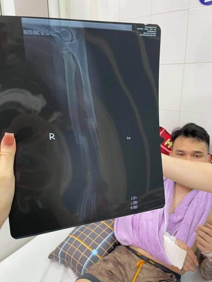 Tay phải của Khắc Việt bị gãy dưới xương trụ và xương quay bên phải 1/3, di lệch chồng.