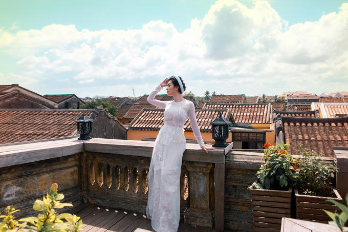 Mới đây, cô thực hiện bộ ảnh ở Hội An, với chiếc áo dài trắng lụa của nhà thiết kế Thuỷ Nguyễn, nữ ca sĩ mềm mại và nển nã hơn.