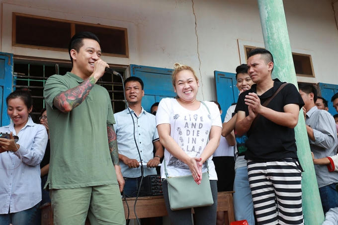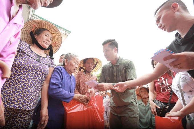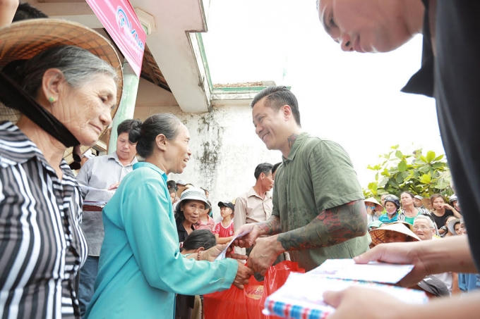 Ca sĩ Tuấn Hưng và MC Phan Anh trực tiếp trao quà cho hơn 500 hộ dân ở Quảng Bình