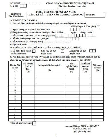 Thứ 2, thí sinh tải mẫu phiếu điều chỉnh nguyện vọng để điền thông tin và nộp đến các điểm tiếp nhận từ ngày 15 – 23/7