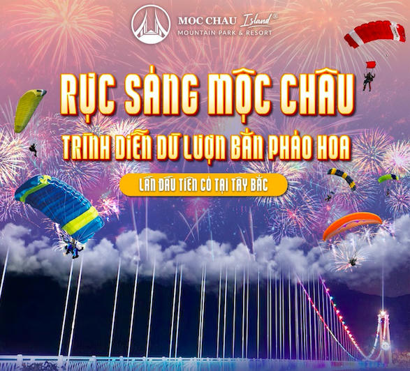 Đặc biệt du khách sẽ được tham gia các hoạt động trải nghiệm bay dù lượn bắn pháo hoa với những màn trình diễn pháo hoa đẹp mặt trên những chiếc dù lượn giữa núi rừng Tây Bắc hay Bay cùng Khinh khí cầu, trải nghiệm bay khinh khí cầu giữa núi rừng Tây Bắc, ngắm trọn vẹn thung lũng “đảo phồn hoa” Mộc Châu Island.
