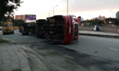 Bình Dương: Xe container nằm “phơi bụng” sau cú ôm cua của tài xế