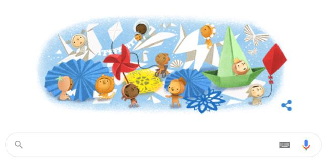 Sáng 1/6, Google thay đổi giao diện doodle kỷ niệm Ngày Quốc tế Thiếu nhi 1/6 - Ngày Trẻ em. Giao diện mô tả trẻ em từ khắp nơi trên thế giới cùng vui chơi với origami, thuyền giấy, hồng hạc và những cánh chong chóng.