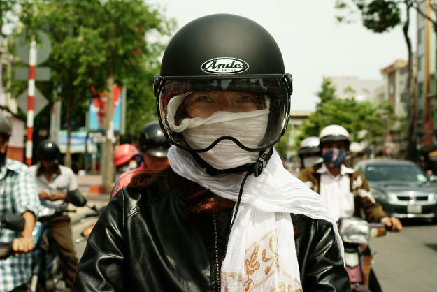 Chị em khoác lên người rất nhiều món đồ như vậy mỗi khi phải lái xe ra đường trong cái nắng gay gắt của mùa hè. Những món đồ cầu kỳ, độc đáo này đưa lại ấn tượng thị giác lạ lẫm về một xu hướng lạ kỳ - phụ nữ Việt Nam thích làn da trắng.