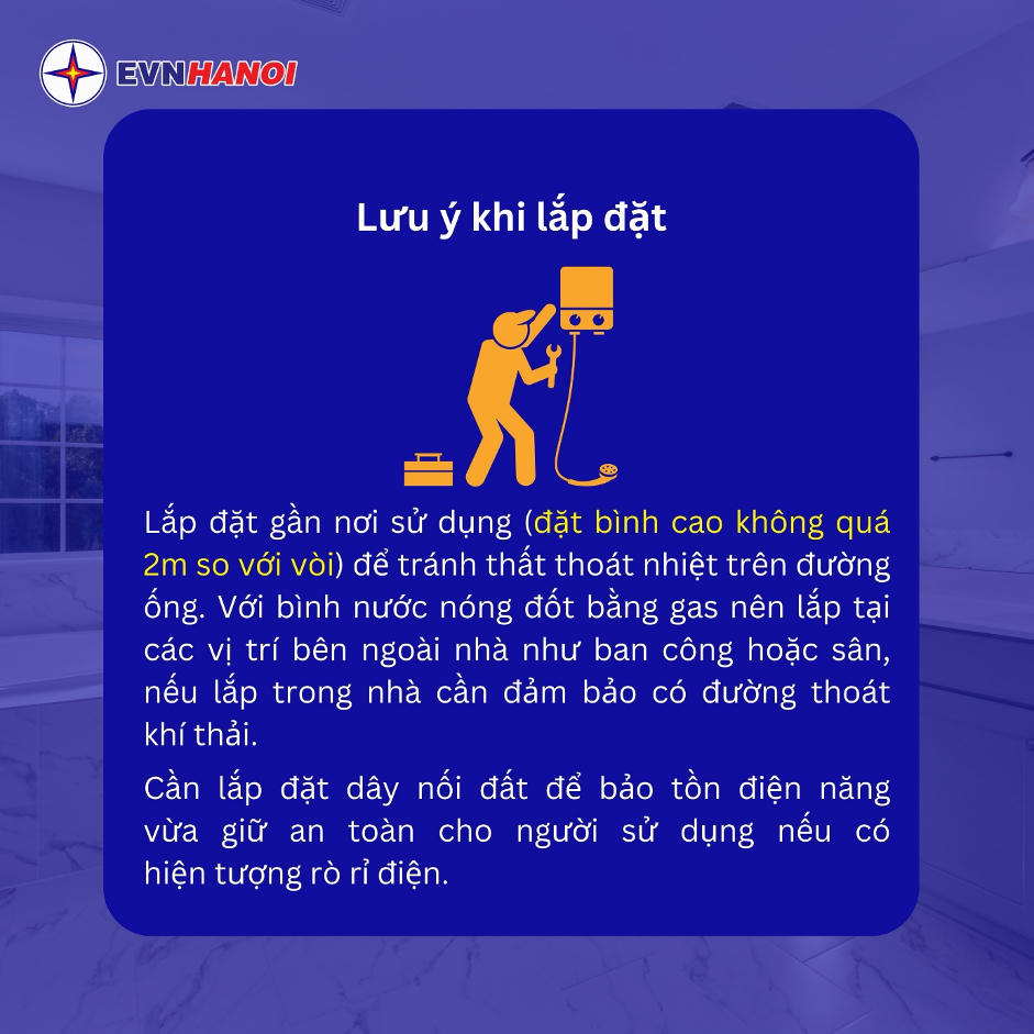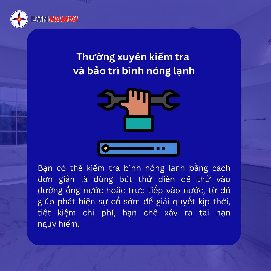 Mùa đông, nhu cầu sử dụng bình nóng lạnh tăng cao. Việc sử dụng sai cách như bật bình nóng lạnh trong khi tắm hay bật bình nóng lạnh cả ngày… khiến không ít người gặp nguy hiểm, thậm chí dẫn đến thiệt mạng. EVNHANOI khuyến cáo khách hàng nâng cao nhận thức trong cách sử dụng bình nóng lạnh như sau: