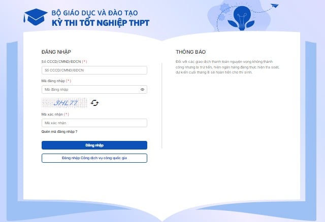 Thí sinh truy cập website chính thức của Bộ GD&ĐT có địa chỉ https://thisinh.thitotnghiepthpt.edu.vn.
