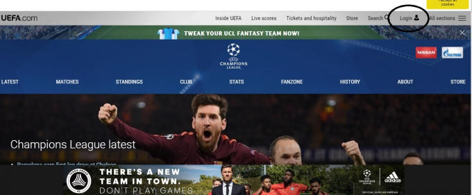 Cách xem Champions League/cúp C1 châu Âu mới nhất trên trang chủ UEFA.
