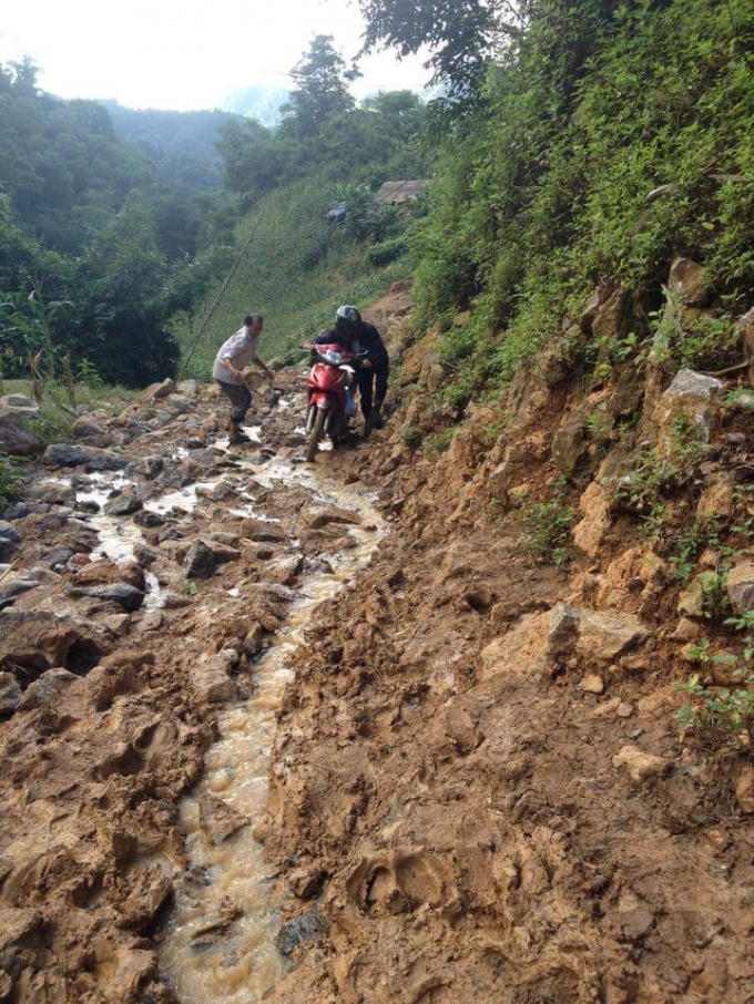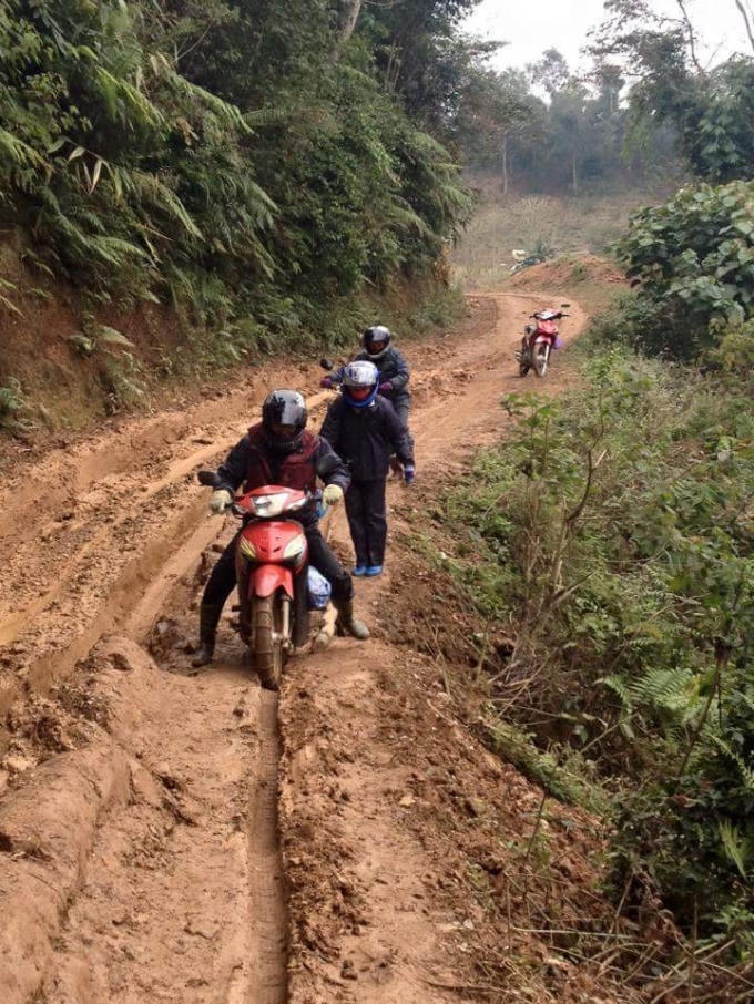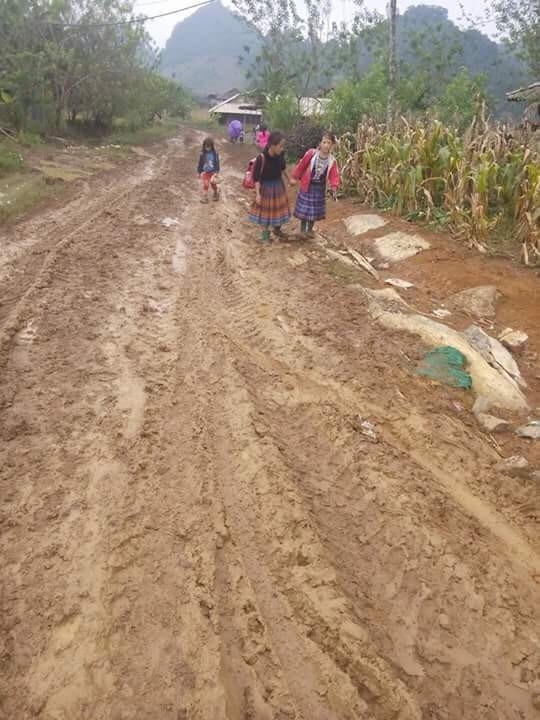 Vất vả vượt hàng chục cây số đường đồi núi, với thời tiết đẹp thì việc đi lại cũng đã khó khăn nhưng với những ngày mưa gió, việc di chuyển quanh những đoạn đường đến trường là cả một chặng đường gian nan và nhiều nguy hiểm.