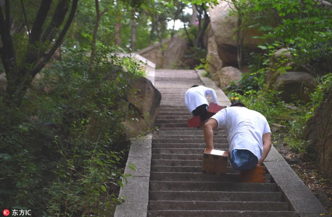 Một bé trai 11 tuổi đến từ Trung Quốc bị mất cả hai chân trong một tai nạn ô tô đã cùng người thầy đồng cảnh ngộ của mình cố gắng chinh phục ngọn núi cao hơn 1.100m bằng hai bàn tay.