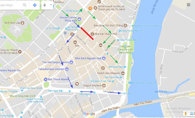 - Đường Đồng Khởi, Quận 1: Đoạn từ đường Ngô Đức Kế đến đường Tôn Đức Thắng.