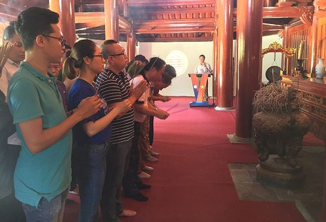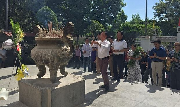 | TS Đào Văn Hội, Tổng Biên tập Báo PLVN cùng Đoàn cán bộ, phóng viên dâng hương tại Khu di tích Ngã ba Đồng Lộc. |