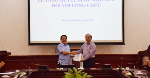 | Phó Tổng Biên tập Thường trực Đặng Ngọc Luyến (trái) trao quà cho Ban quản lý Khu di tích Ngã ba Đồng Lộc. |