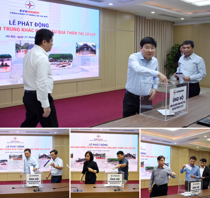 Phát động chương trình, đồng chí Nguyễn Anh Tuấn - Thành ủy viên, Bí thư Đảng ủy, Chủ tịch Hội đồng thành viên EVNHANOI cho biết những ngày qua, các đợt mưa lũ lớn liên tục, kéo dài đã ảnh hưởng nghiêm trọng, gây thiệt hại rất nặng nề đến tính mạng, tài sản và đời sống của người dân các tỉnh miền Trung ruột thịt. Đồng chí kêu gọi toàn thể các đảng viên, cán bộ, công nhân viên, người lao động EVNHANOI chung tay cùng nhân dân cả nước tiếp tục quyên góp, chia sẻ những khó khăn, mất mát do thiên tai gây ra tại miền Trung.