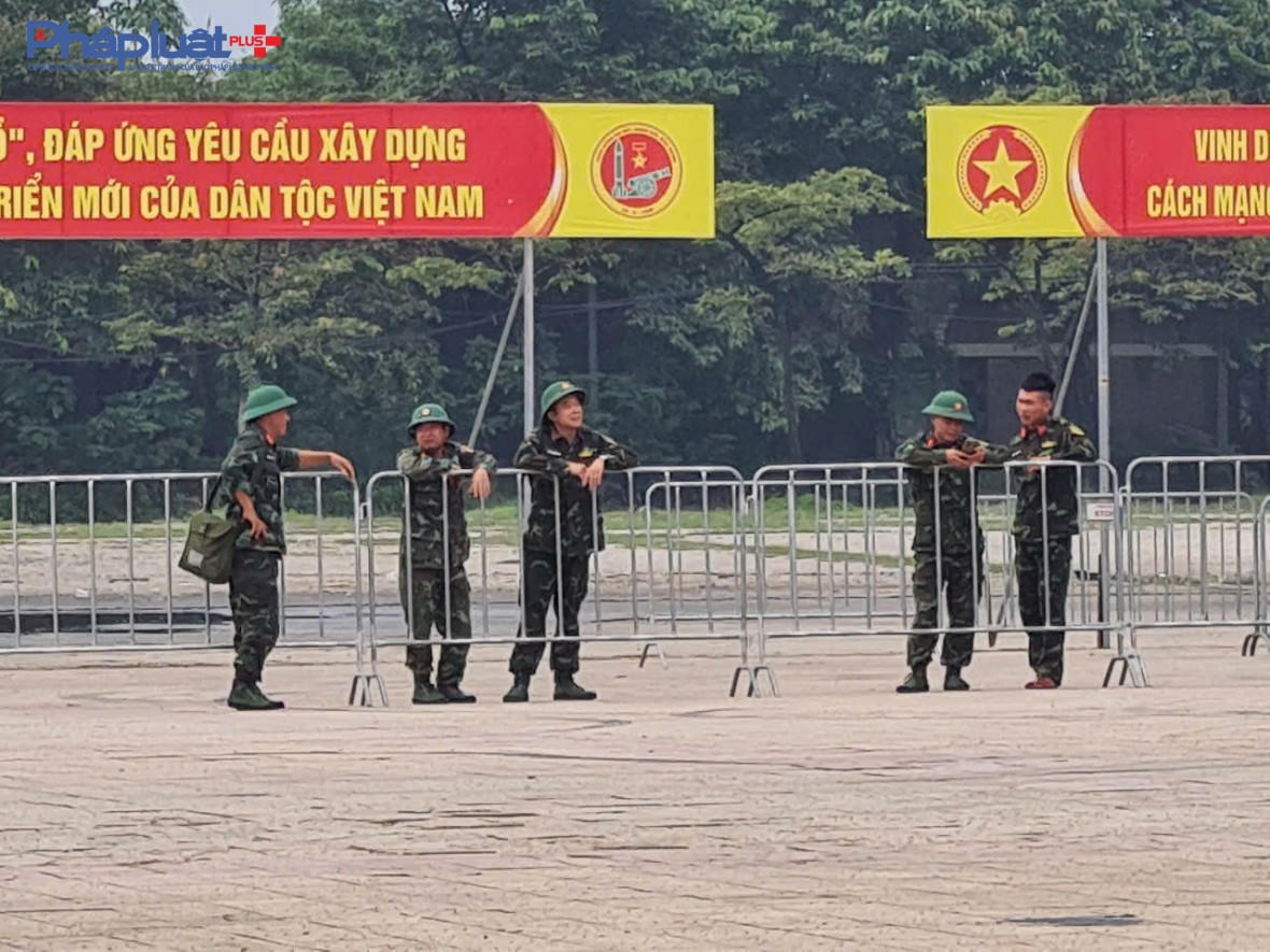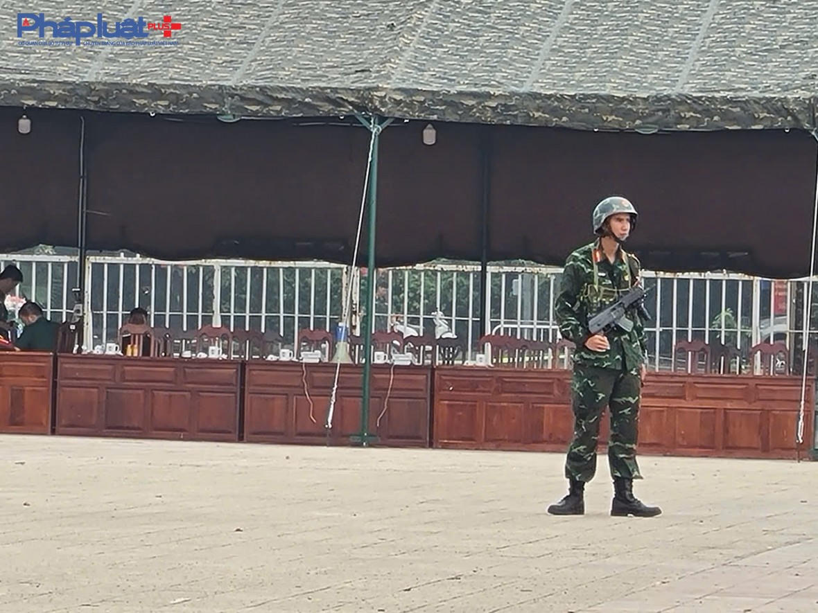 Lực lượng an ninh được bố trí canh gác xung quanh khu vực bố trí dàn Đại bác, đảm bảo khoảng cách an toàn giữa những người thăm quan và các thiết bị.