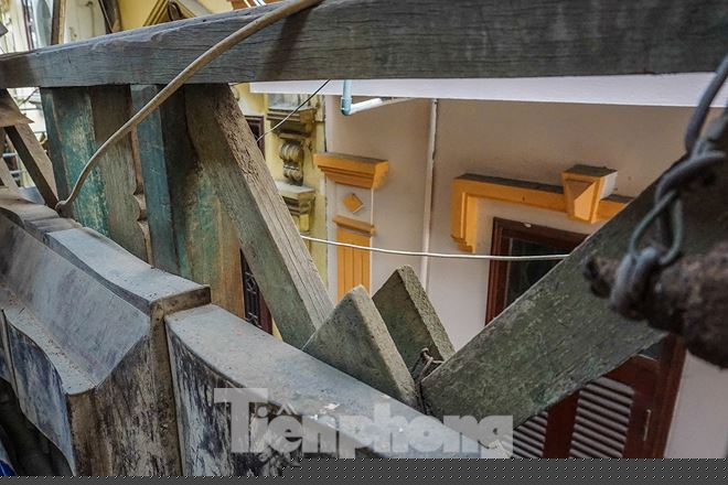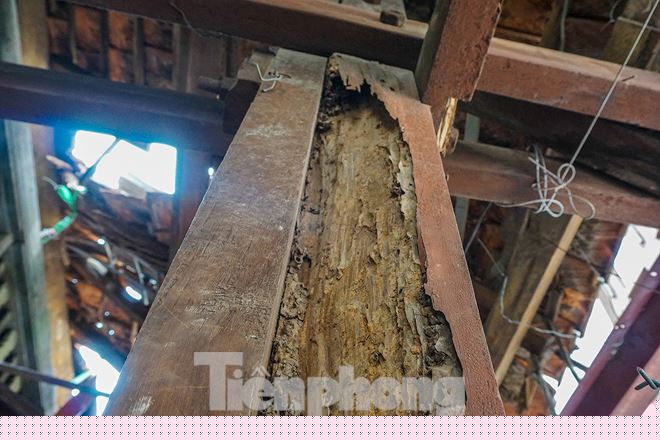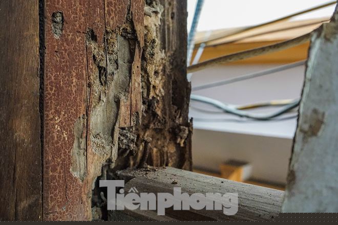 Các cột chống bằng gỗ đã mục nát gần hết.