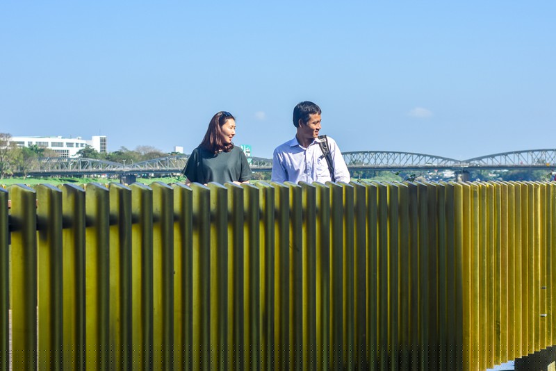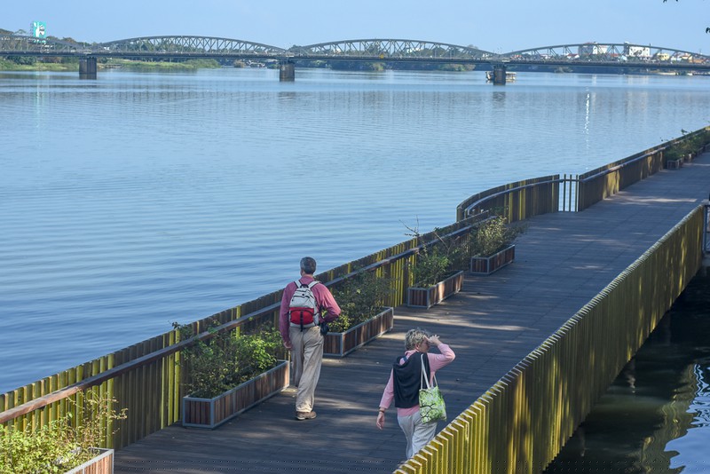 Được khởi công vào đầu năm 2018, sau thời gian triển khai xây dựng, vào chiều hôm nay (15-1) cây cầu đi bộ bên bờ nam sông Hương sẽ chính thức đi vào hoạt động, phục vụ người dân và du khách mỗi lần đến với cố đô Huế. Ảnh: NGUYỄN DOCông trình đường đi bộ trên sông Hương nằm trong dự án xây dựng mạng lưới kết nối hệ thống tuyến đường đi bộ phía Nam sông Hương do Tổ chức Koica (Hàn Quốc) tài trợ không hoàn lại 100%. Ảnh: NGUYỄN DONhững ngày này, công nhân đang khẩn trương hoàn tất những công đoạn cuối cùng để chuẩn bị khánh thành. Ảnh: NGUYỄN DOCầu được lát bằng gỗ lim, trên tuyến đường có lắp đặt hệ thống đèn điện, vòi nước để phục vụ du khách và người dân. Ảnh: NGUYỄN DONhững chậu cây được trang trí trên cầu. Ảnh: NGUYỄN DONhững lối xuống cầu đi bộ. Ảnh: NGUYỄN DOPhút nghỉ ngơi của những công nhân đang quét dọn, cắt tỉa cây trên đường đi bộ gỗ lim. Ảnh: NGUYỄN DOTuyến đường có chiều dài 400 m, chiều rộng 4 m, tổng diện tích 2.443 m2, kết cấu bê tông cốt thép, sàn lát bằng gỗ lim dày 5 cm. Tổng kinh phí là 52 tỉ đồng, trong đó phần kinh phí đối với gỗ lim là 5,7 tỉ đồng. Ảnh: NGUYỄN DOTừ những ngày đầu triển khai, nhiều nhà nghiên cứu và người dân tại tỉnh Thừa Thiên-Huế đã lo ngại về chất lượng gỗ lim liệu có thật sự đảm bảo khi ở địa phương thường xuyên phải chịu ảnh hưởng từ thiên nhiên. Ảnh: NGUYỄN DO