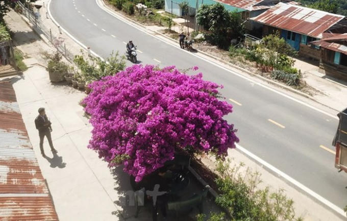Những ngày này, du khách đang "sốt" vì cây hoa giấy cổ thụ có tuổi hơn 1/4 thế kỷ của gia đình bà Huỳnh Thị Sáu, số nhà 67/2, xã Trạm Hành, thành phố Đà Lạt, Lâm Đồng.