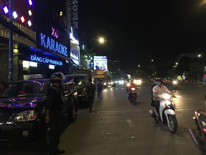 Sau khi hoàn tất khám xét nhà riêng ở huyện Hóc Môn, công an TPHCM tối 10/4, tiến hành phong tỏa, khám xét quán karaoke XO của Trần Ngọc Phúc (SN 1983, tự Phúc XO).