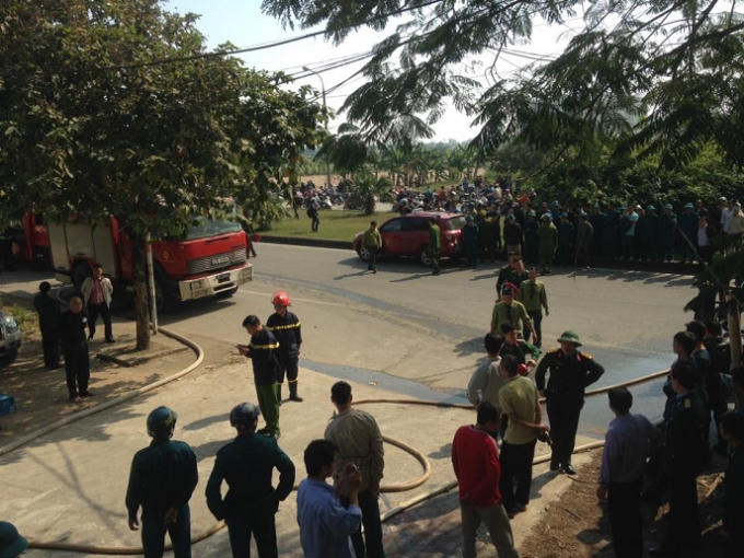 Theo ghi nhận của nhóm Phóng viên Phapluatplus.vn tại hiện trường vụ cháy, đến thời điểm 11h30 đám cháy cơ bản được khống chế, lực lượng chức năng cùng nhiều công nhân, lực lượng Công an đang có mặt tiến hành phong tỏa hiện trường, đồng thời vận chuyển những vật dụng dễ cháy ra xa khỏi khu vực phát hỏa.