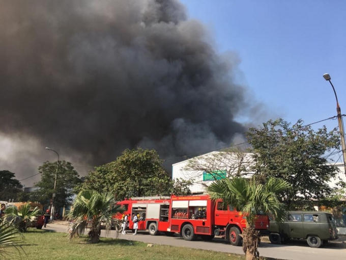 Cũng theo ghi nhận, nhiều xe cứu hỏa, cùng với lực lượng Cảnh sát PCCC và Công an địa phương đã nhanh chóng có mặt tại hiện trường để tiến hành khống chế dập tắt ngọn lửa. Sau khi ngọn lửa được khống chế, nhiều vật dụng tại kho của KCN Ngọc Hồi, đã bị bà hỏa thiêu rụi.