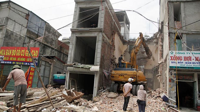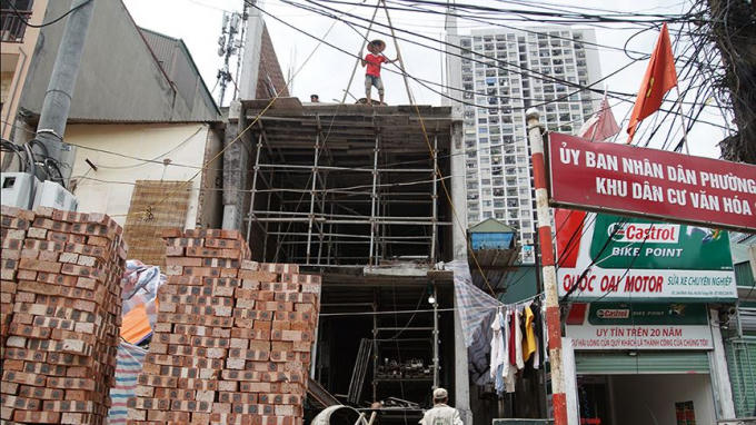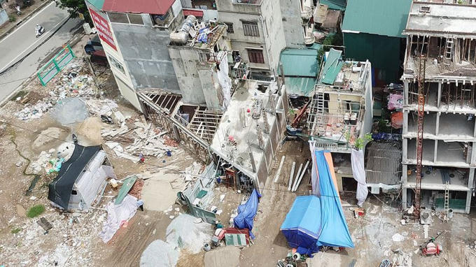 Sau khi hoàn thành giải phóng mặt bằng giai đoạn 1 của dự án đường vành đai II (đoạn cầu Vĩnh Tuy - cầu Mai Động), đoạn đường gần 500m trở nên sôi động với hàng chục công trình xây dựng khiến khu vực trở nên ngột ngạt bởi khói bụi, vật liệu xây dựng.