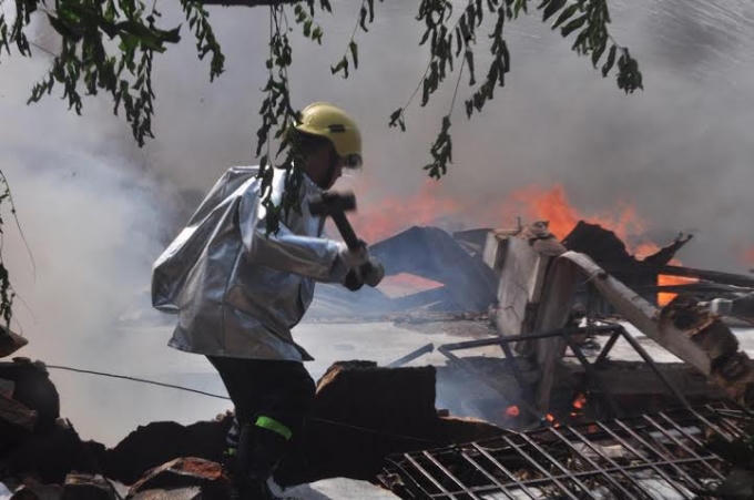 Ước tính có đến khoảng 100 chiến sĩ chữa cháy đang tham gia khống chế đám cháy lớn trên Đại lộ Bình Dương sáng nay.