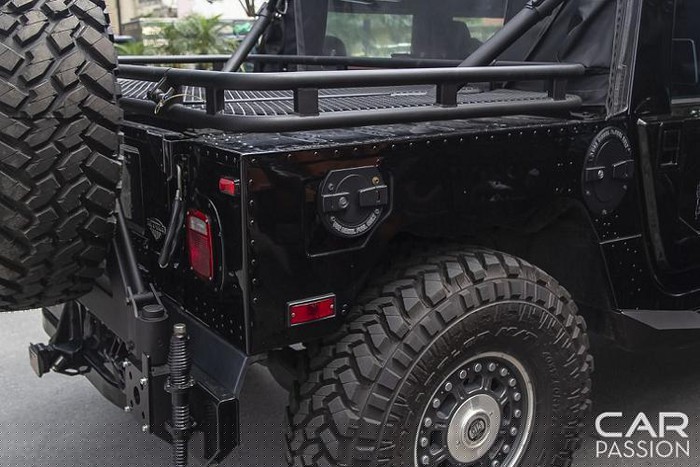 Hummer H1 Alpha còn được trang bị một thùng chứa đồ phía sau rộng lớn tương ứng với kích thước đồ sộ của chiếc xe, quanh khu vực thùng đồng thời cũng được trang bị phần khung kim loại vững chắc, vừa đảm bảo tính an toàn cũng như đem lại sự hầm hố cho ngoại thất chiếc xe. Những phần khung này đều được sơn màu đen mờ đầy hấp dẫn.